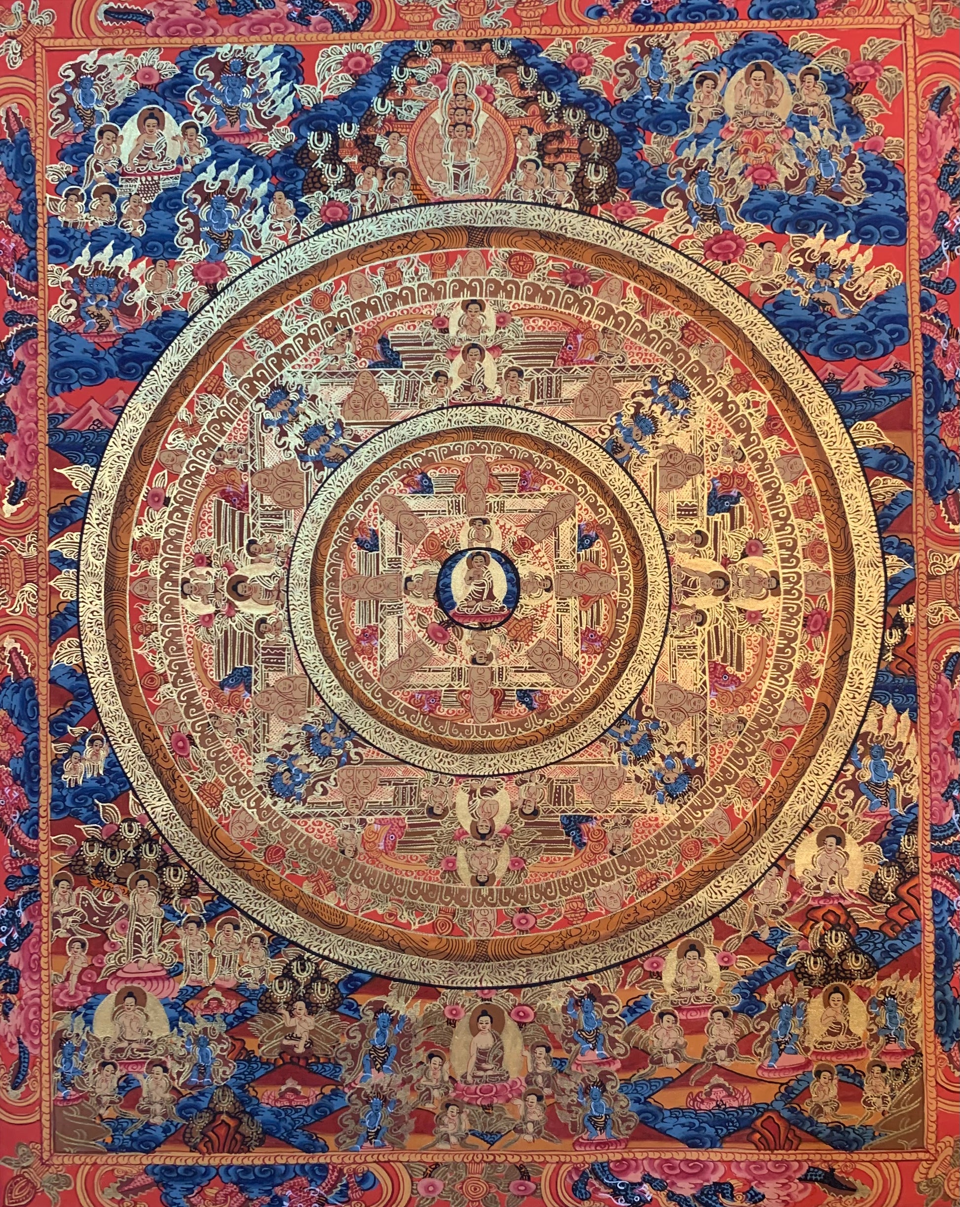 This beautiful hand painted Tibetan thangka painting depicts Buddha Mandala Thangka