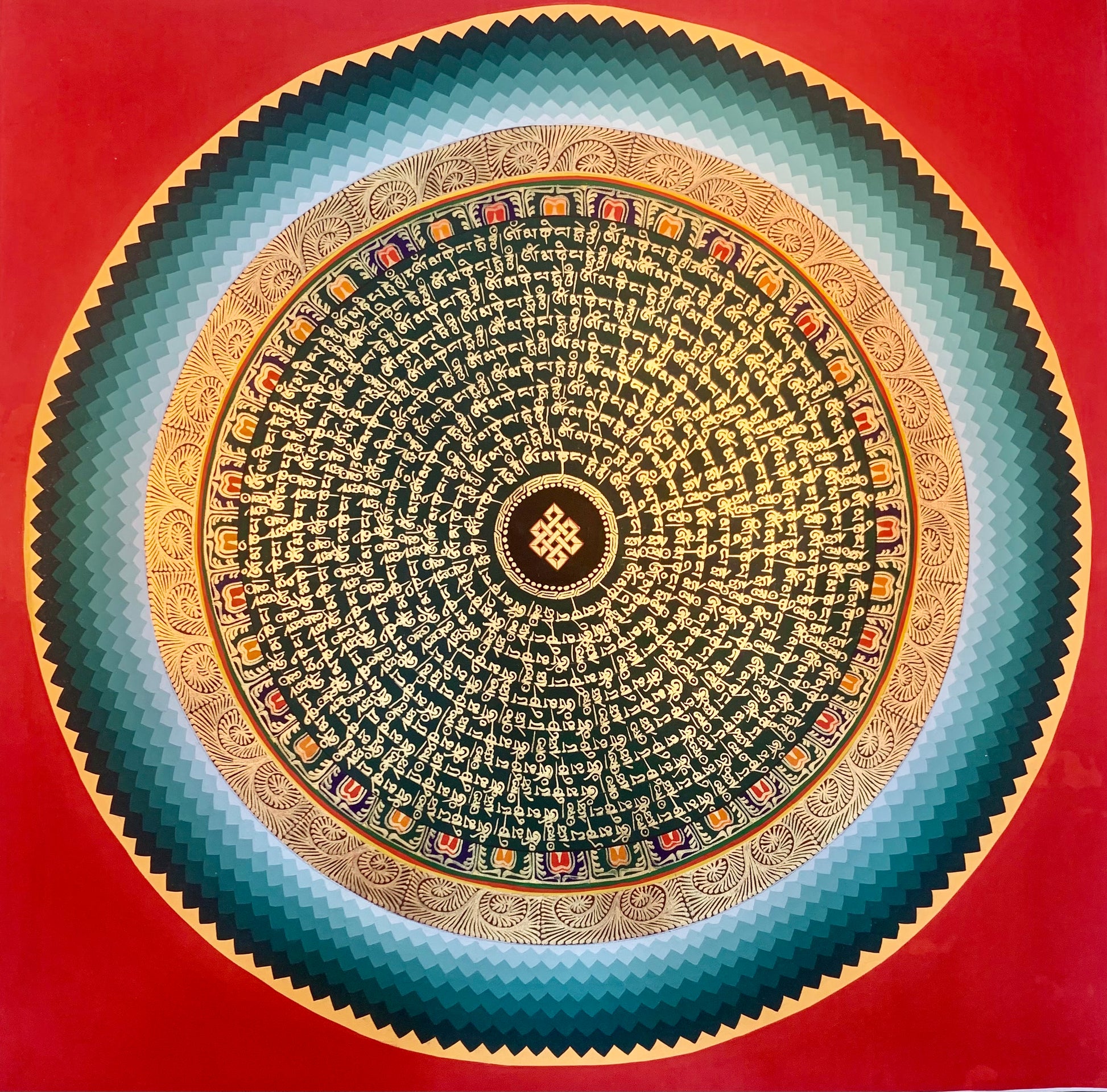 Esta hermosa thangka tibetana pintada a mano representa Mantra Mandala