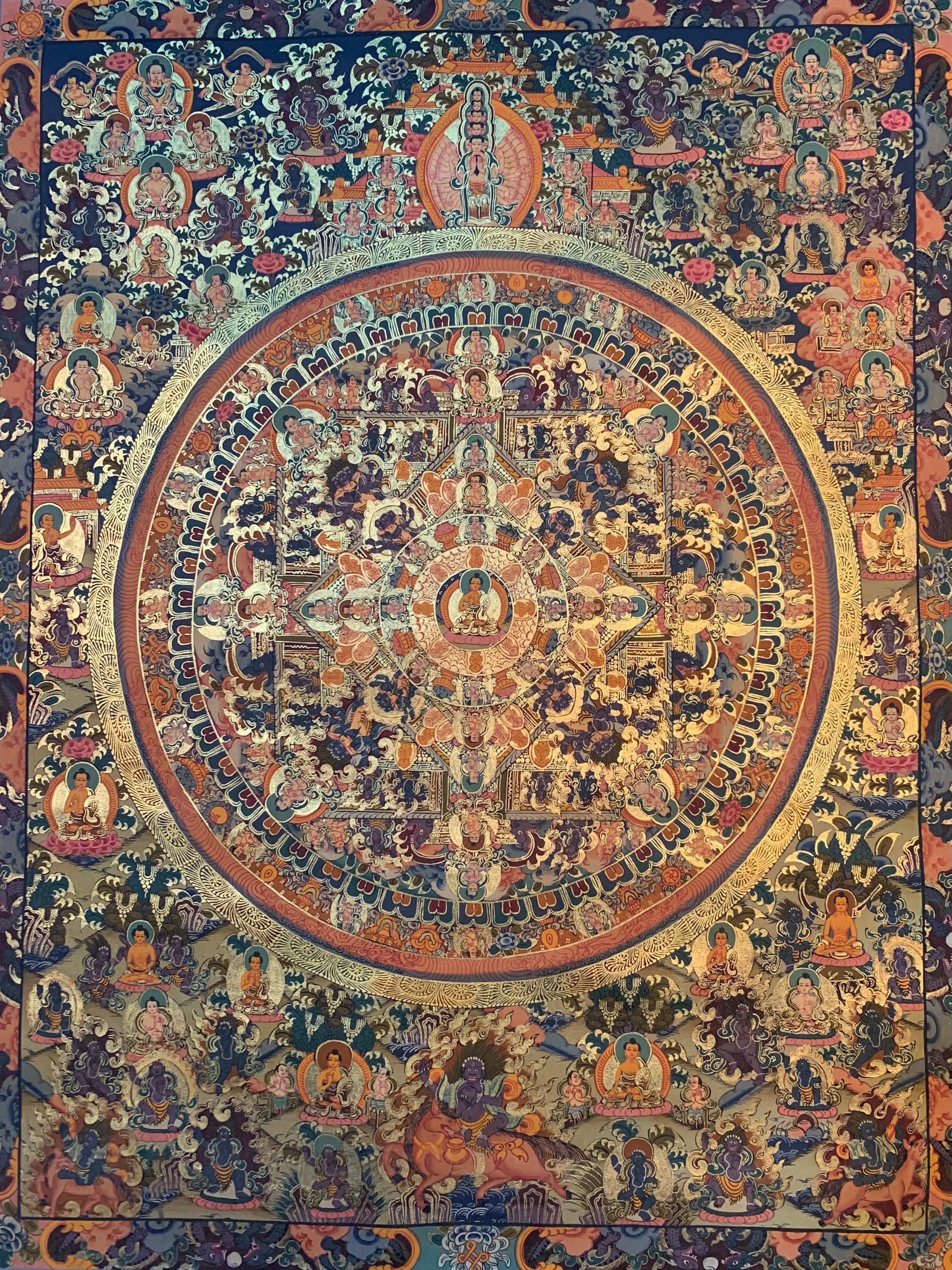 This beautiful hand painted Tibetan thangka painting depicts Buddha Mandala Thangka