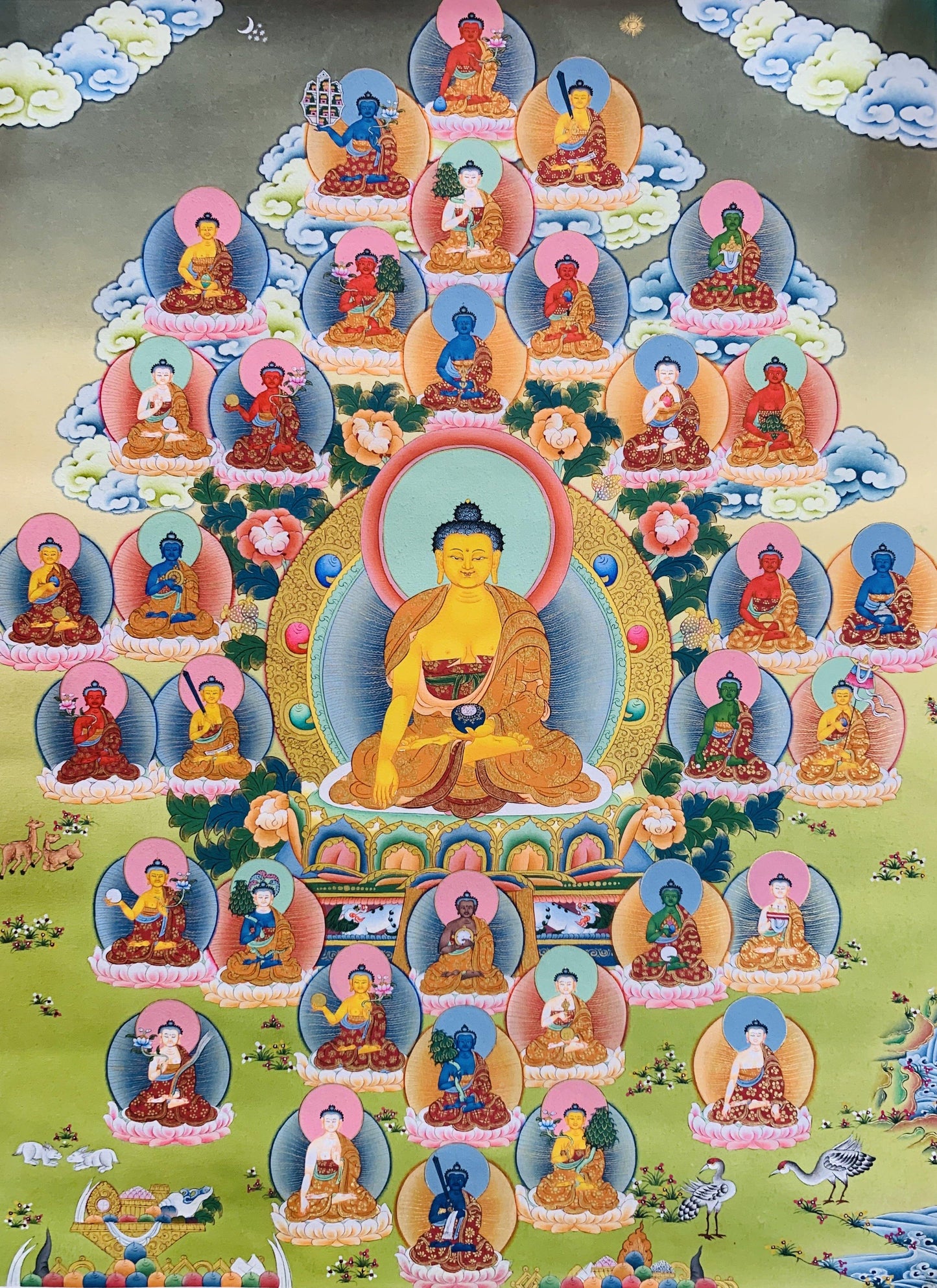 释迦牟尼佛和坦白三十五佛唐卡画56 * 42