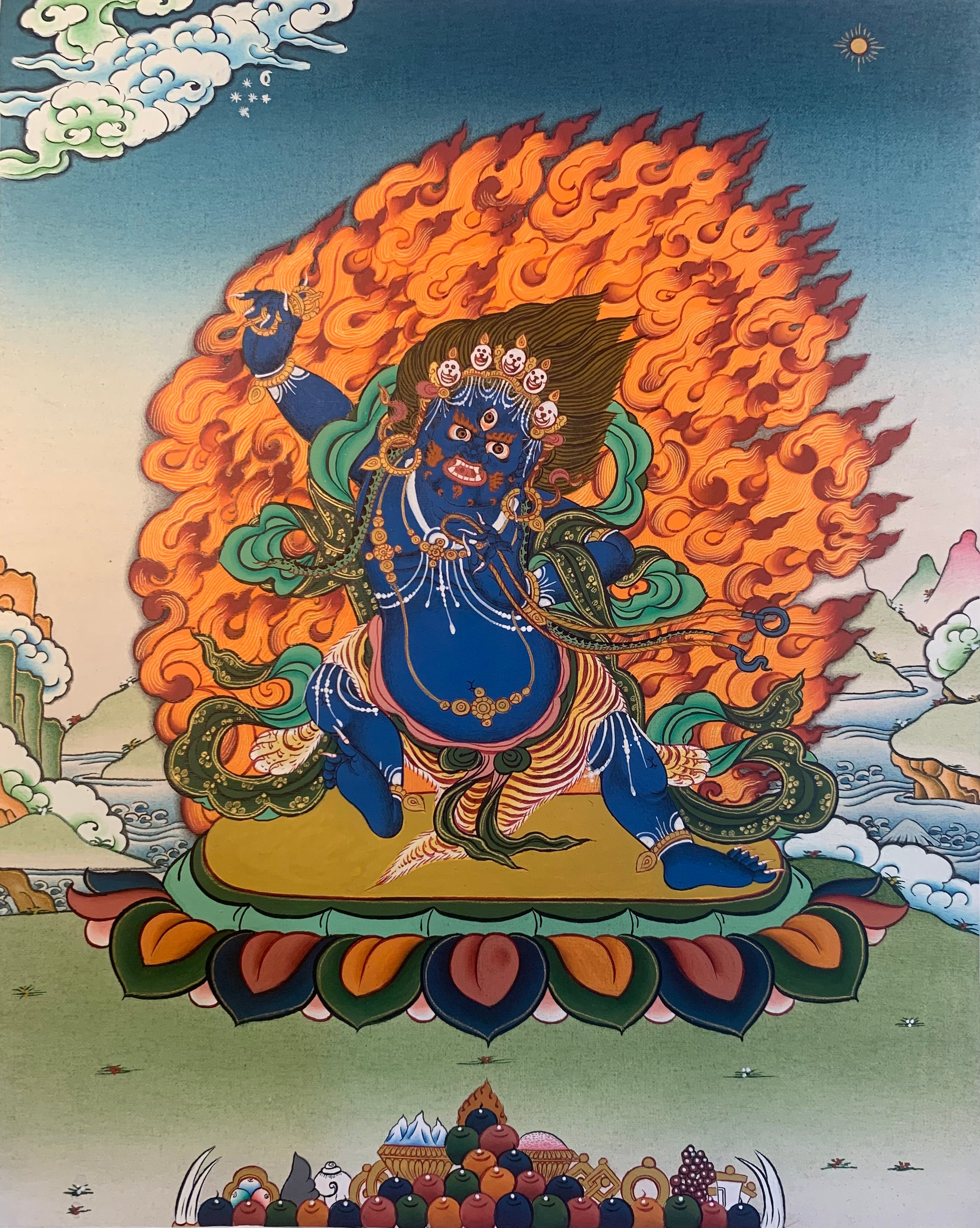 This beautiful hand painted Tibetan thangka painting depicts Vajrapani